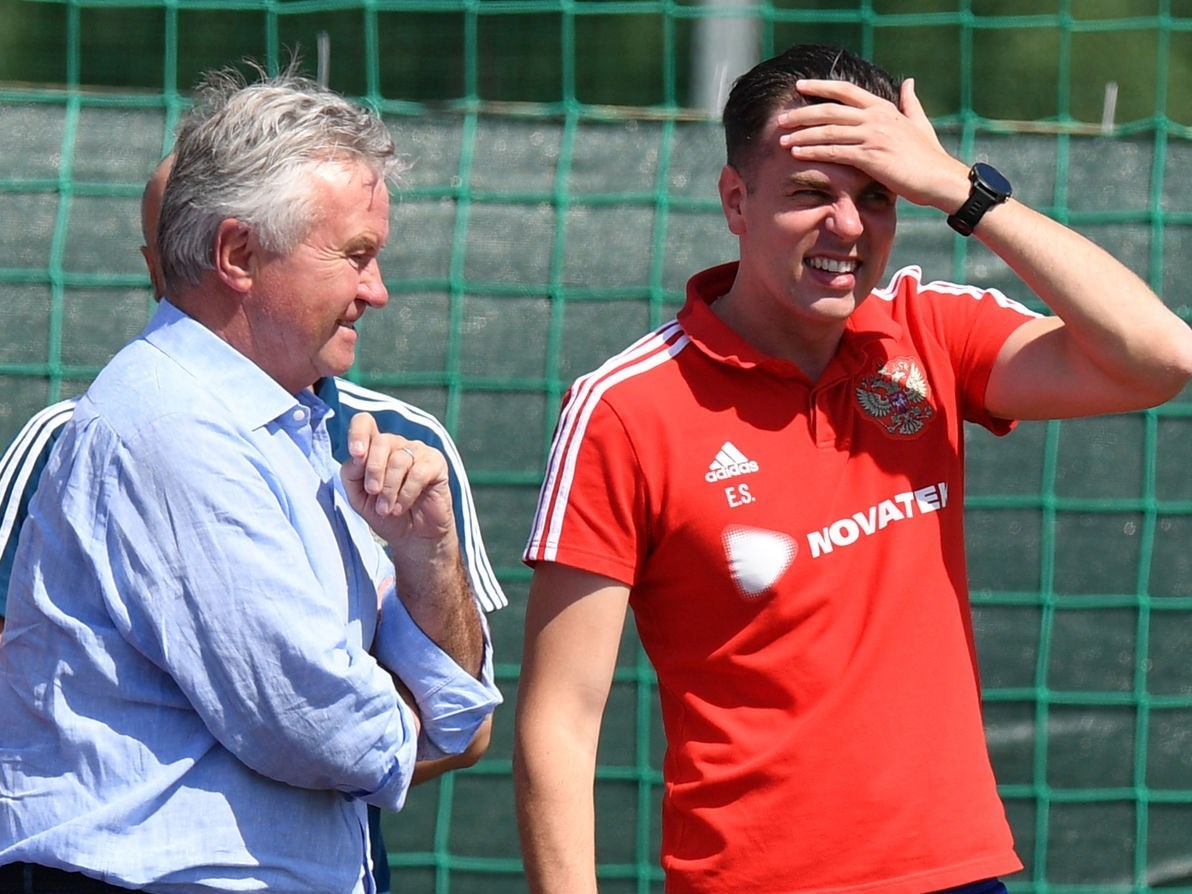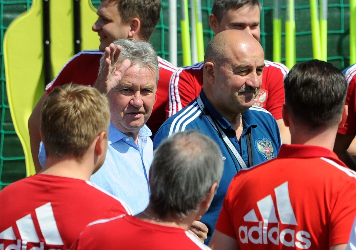 به گزارش خبرگزاری تسنیم، تیم ملی فوتبال روسیه مهیای نبرد حساس یکشنبه هفته آینده برابر اسپانیا از مرحله یکهشتم نهایی جام جهانی 2018 برابر اسپانیا میشود. استانیسواو چرچسوف، سرمربی تیم ملی فوتبال روسیه برای شارژ روحی شاگردانش از گاس هیدینگ، سرمربی پیشین تیمهای رئال مادرید و چلسی دعوت کرد تا در تمرین آنها حضور یابد. این سرمربی 71 ساله هلندی امروز به تمرین تیم ملی فوتبال روسیه رفت و صحبتهایی با کادر فنی و بازیکنان این تیم انجام داد. هیدینگ در سالهای 2006 تا 2010 میلادی سرمربی تیم ملی فوتبال روسیه بود.