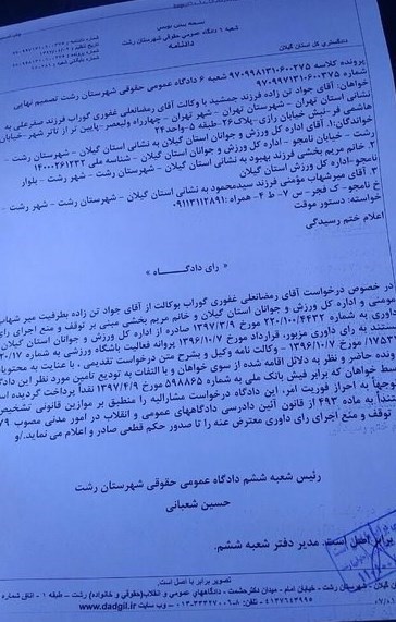 به گزارش خبرنگار ورزشی خبرگزاری تسنیم، با رأی دادگاه استان گیلان، حکم مالکیت باشگاه سپیدرود رشت که پیش از این از سوی اداره کل ورزش و جوانان استان گیلان از جواد تنزاده خلع و به محمد نوین واگذار شده بود، دوباره به تنزاده بازگردانده شد.