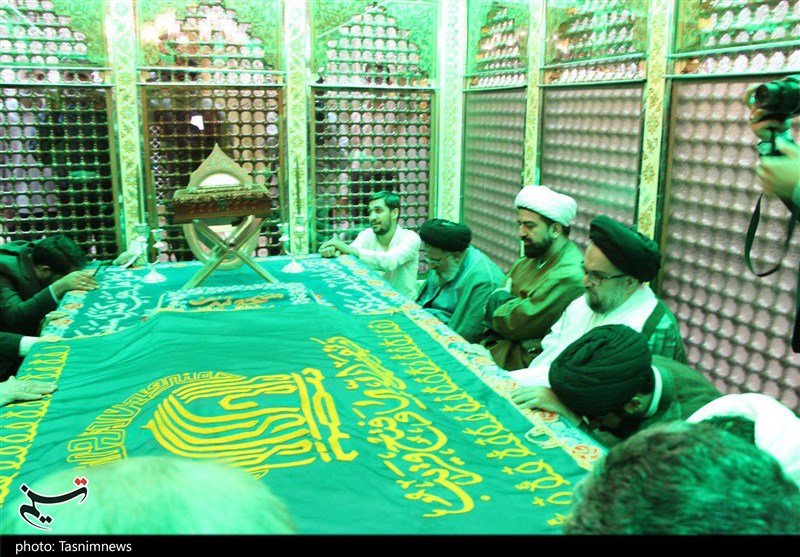 در ابتدای این مراسم زیارت عاشورا و مدیحه سرایی اهل بیت عصمت و طهارت(ع) به ویژه در وصف حضرت امام رضا(ع) و حضرت فاطمه معصومه(س) قرائت شد.