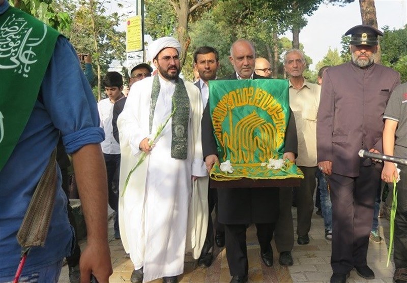 در ادامه این مراسم، اقشار مختلف مردمی در معیت خدام بارگاه امام رضا (ع) از مقابل مسجد صاحبالزمان(عج) واقع در خیابان کمیل در قالب کاروانی مردمی به سمت مقبره شهدای گمنام بوستان رضوان حرکت کردند.