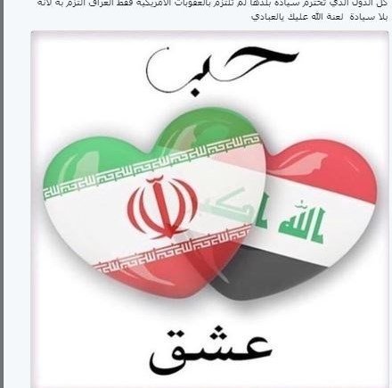 کاربری با انتشار تصویر جالب با هدف نشان دادن همبستگی ملتهای عراق و ایران نوشته است تمام کشورهایی که به حاکمیت خود احترام بگذارند،به تحریمهای آمریکا پایبند نیستند،فقط عراق به آن پایبند است، زیرا کشوری بدون حاکمیت است.
