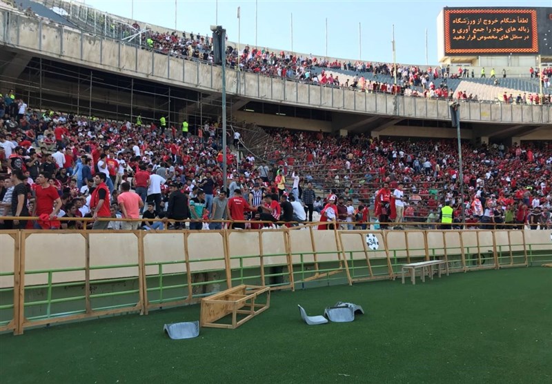 * هواداران تراکتور‌سازی با مأموران انتظامی حاضر در ورزشگاه درگیر شدند و به سمت آنها سنگ پرتاب کردند.