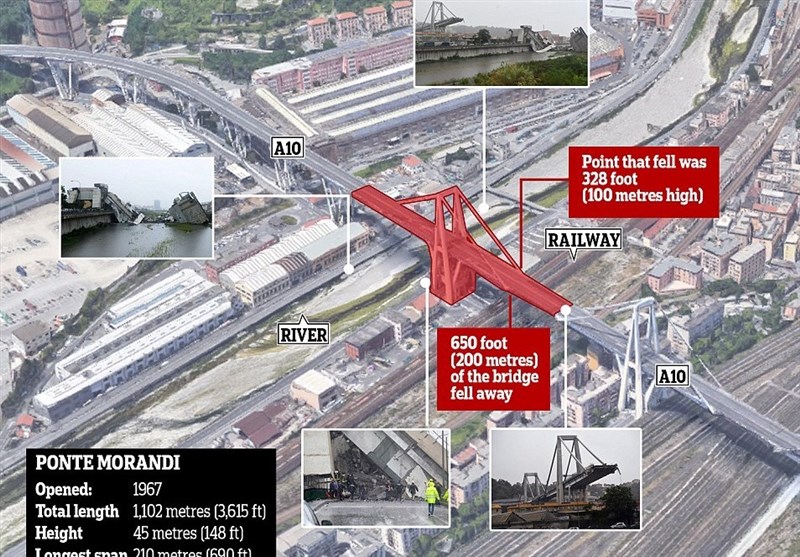 به گزارش گروه بین الملل خبرگزاری تسنیم، سه شنبه عصر یک پل هوایی عظیم در شهر جنوا در ایتالیا یکباره فرو ریخت و بر اثر این حادثه 35 تن کشته و شمار زیادی زخمی شدند.