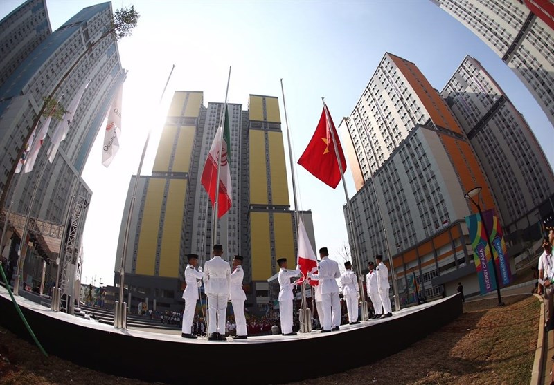 بازی‌های آسیایی 2018| اهتزاز پرچم ایران در دهکده بازی‌های آسیایی + تصاویر