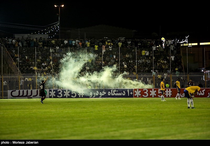 یکی از هواداران نفت مسجدسلیمان چاقو در دست دارد که در تصویر شکار شده است. مأموران یگان ویژه ورزشگاه نیز این هوادار را شناسایی کرده و روی صورت او لیزر انداختند و او را دستگیر کردند.