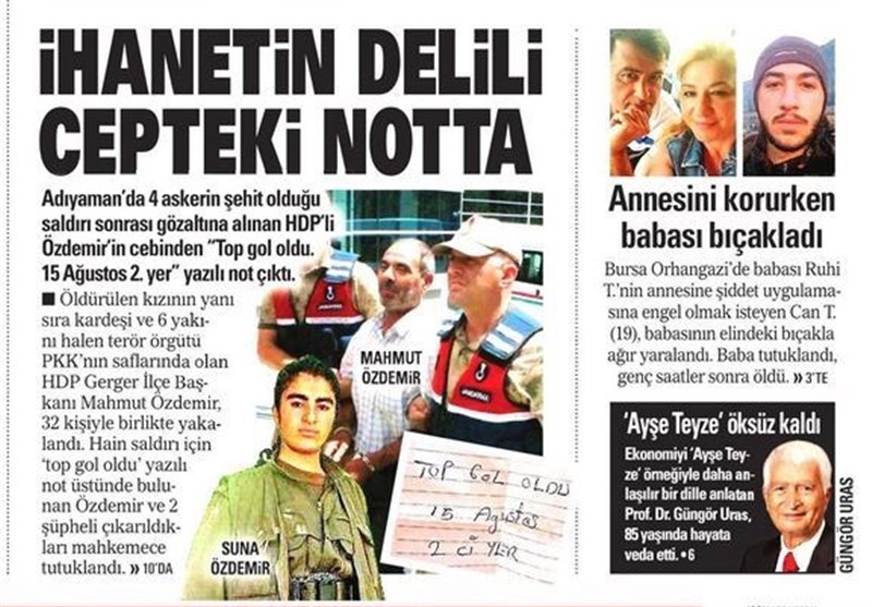 - اثبات خیانت یکی از مسئولین حزب دموکراتیک خلقها (HDP) در شهادت 4 نظامی ترکیه در آدیامان