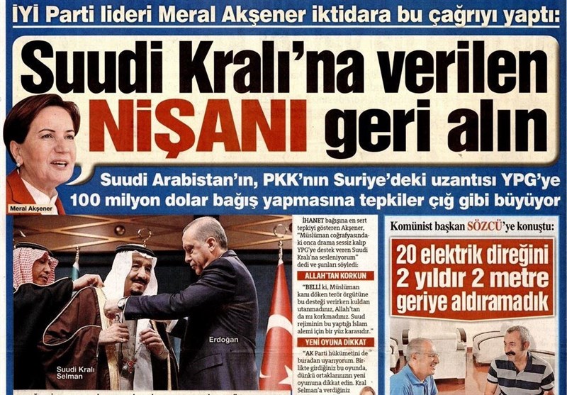 - آکشنر: حالا که پادشاه عربستان از پ.ک.ک حمایت کرده، مدالی را که به او دادید، پس بگیرید