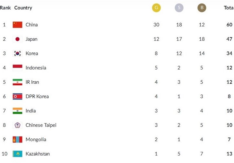 کاروان ایران به لطف مدالآوری امروز، یک رتبه نسبت به روز گذشته در جدول توزیع مدالها بالا آمد و در رده پنجم قرار گرفت.