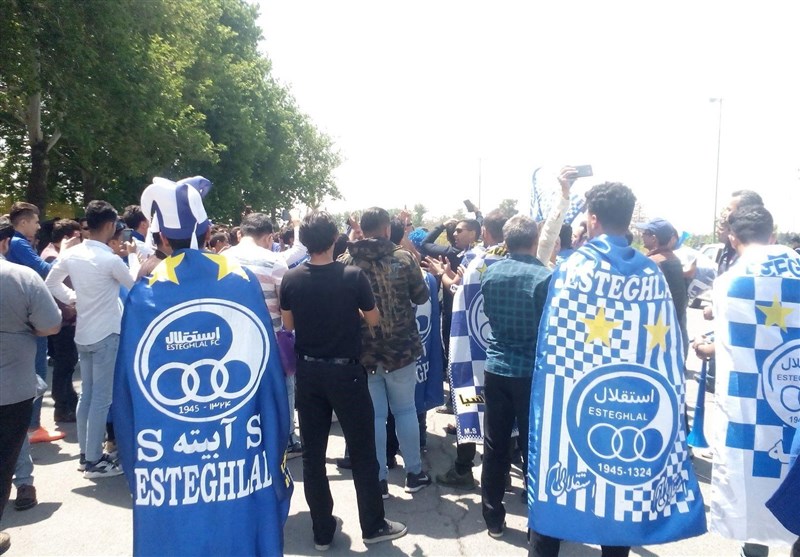 * هوادارانی مقابل هتل محل اقامت استقلال تجمع کرده تا با بازیکنان عکس یادگاری بگیرند.