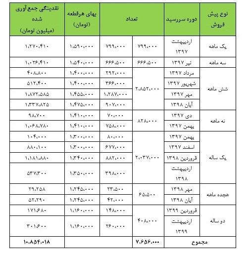 بر اساس اطلاعات منتشرشده در گزارش مرکز پژوهشهای مجلس شورای اسلامی در طرح پیشفروش سکه قرار بوده تا ابتدای سال 99 (در طرح پیشفروش دوساله) بیش از 7میلیون و 6هزار سکه توزیع شود تا حدود 11هزار میلیارد تومان از بازار جمعآوری شود.