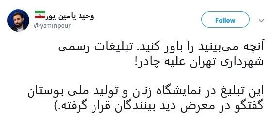 یکی از واکنشهای صورت گرفته نسبت به این بنر و حدف زنگ مشکی این بوده است که شهرداری رسماً علیه چادر تبلیغات میکند.