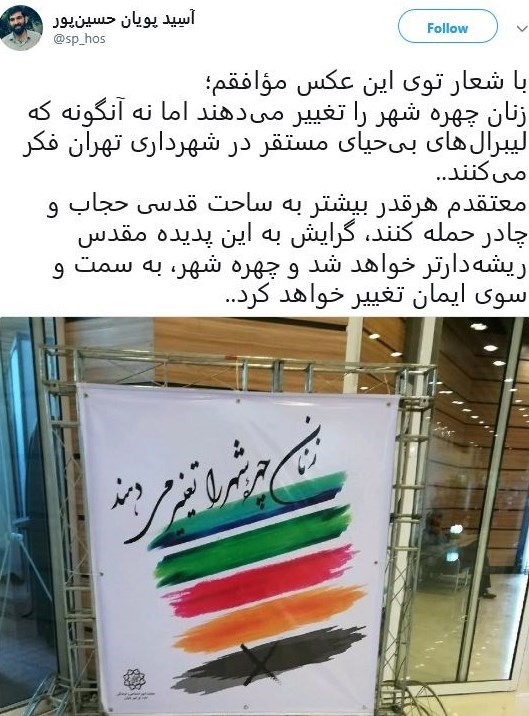 در این نمایشگاه بنری تحت عنوان "زنان چهره شهر را تغییر میدهند با 5 رنگ(سبز،آبی، قرمز، نارنجی و البته مشکی (خاکستری) در داخل نمایشگاه نصب شده است که در ادامه طراحی این بنر ضربدری روی رنگ مشکی(خاکستری) کشیده شده بود که بسیاری از کاربران فضای مجازی نسبت به این بنر مطالبی را منتشر کرده بودند.