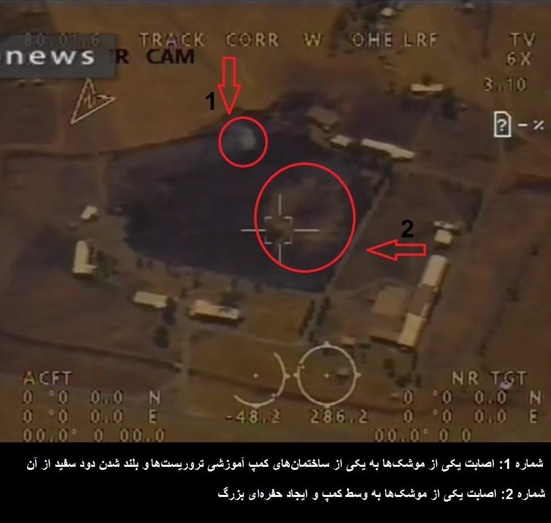 در فیلم منتشره توسط سپاه هم، نمایی بسیار کوتاه و چند ثانیه‌ای از محل اصابت موشک‌ها به مرکز آموزش تروریست‌ها هم منتشر شده است، که از دید بسیاری مغفول مانده است.