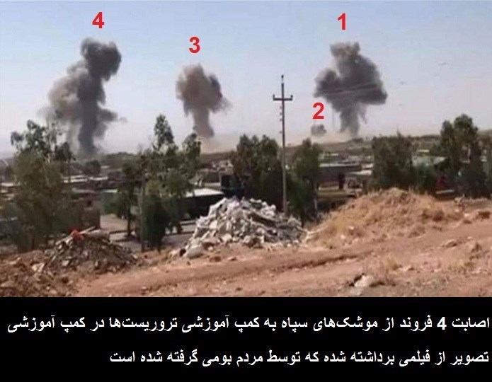 اگرچه فیلم کامل اصابت موشک‌ها به کمپ آموزشی منتشر نشده است، اما در فیلمی که مردم بومی منطقه گرفته‌اند، واضح است که سپاه در یک استراتژی معقول نظامی و برای تخریب کامل این کمپ، تلاش کرده که موشک‌ها را به صورت خطی به کمپ مورد اصابت قرار دهد که موفق هم بوده است.