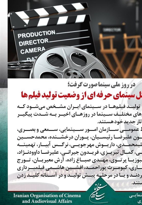 به گزارش باشگاه خبرنگاران پویا، کارگردانهایی همچون علیرضا رئیسیان، پوران درخشنده، محمدحسین مهدویان، کیوان علیمحمدی، داریوش مهرجویی، نرگس آبیار، تهمینه میلانی، مانی حقیقی، کمال تبریزی، فریدون جیرانی، علیرضا داوودنژاد، منوچهر هادی، کامبوزیا پرتوی، مهدی صباغ زاده، آرش معیریان، تورج اصلانی، محمود غفاری، کیومرث پوراحمد، افشین هاشمی فیلمبرداری آثار خود را آغاز کردند و یا در مرحله پیش تولید و در آستانه کلید زدن جدیدترین اثر خود هستند.