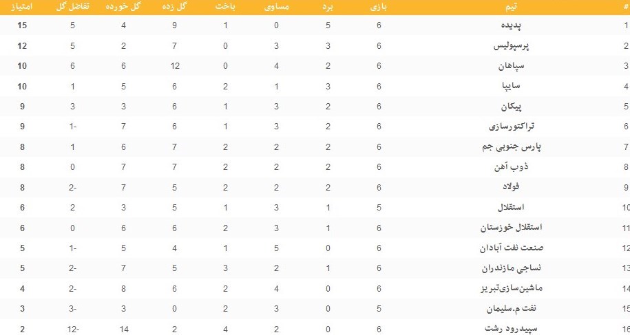 نتیجه 7 دیدار برگزار شده هفته ششم به شرح زیر است: