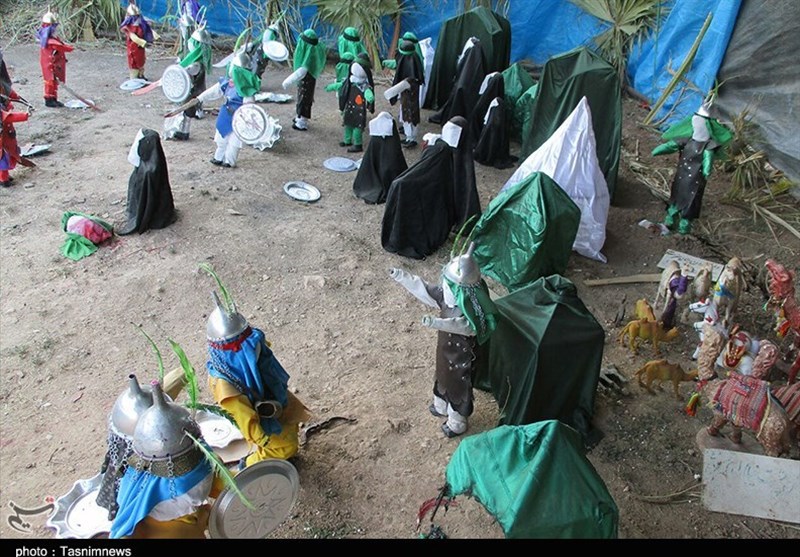 سیده ماهی موسوی، لَچک را سفت پیچیده دور صورتِ گردش. چین پیری زیر چشمانش نشسته. دستش به کوک زدن است. حسرتِ مانده بر چشم، در رؤیایی است که نمایشگاه را اعتبار ببخشد. خاطرهها دور و نزدیک میشود:«همهچیزِ اینجا از یک ماکت خرابه شام در کنار خیابان شروع شد. روزی که پسرم آنجا را ساخت، نه روایتی داشت و نه محتوایی. در آن سال عهد بستم که عروسکهایی واقعه گو از روز عاشورا را بسازم. پیش از آن اصلاً دستم به عروسکهای دستساز نرفته بود. آن سال کودکانی که میآمدند از عروسکها میپرسیدند. از کجا آمدهاند و در عاشورا چه کردهاند؟ همان پرسشهای کودکانه جرقهای شد برای تولد این شخصیتها. امسال پارچههای عروسکها گران شده است. 600هزارتومان پارچه خریدیم.»