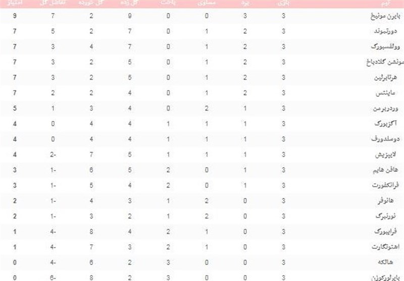 جدول ردهبندی بوندسلیگا را مشاهده کنید.