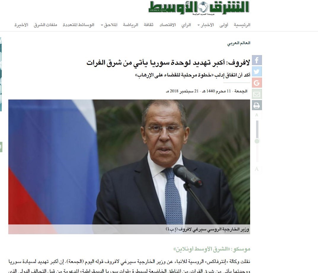 -لاوروف: توافق ادلب مرحله ای است و النصره باید از ادلب خارج شود؛ بزرگترین تهدید علیه وحدت سوریه از شرق فرات است
