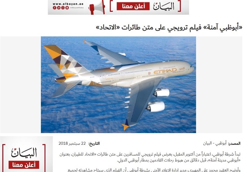 "-ابوظبی امن است" فیلم تبلیغاتی در هواپیماهای شرکت "الاتحاد" امارات متحده عربی