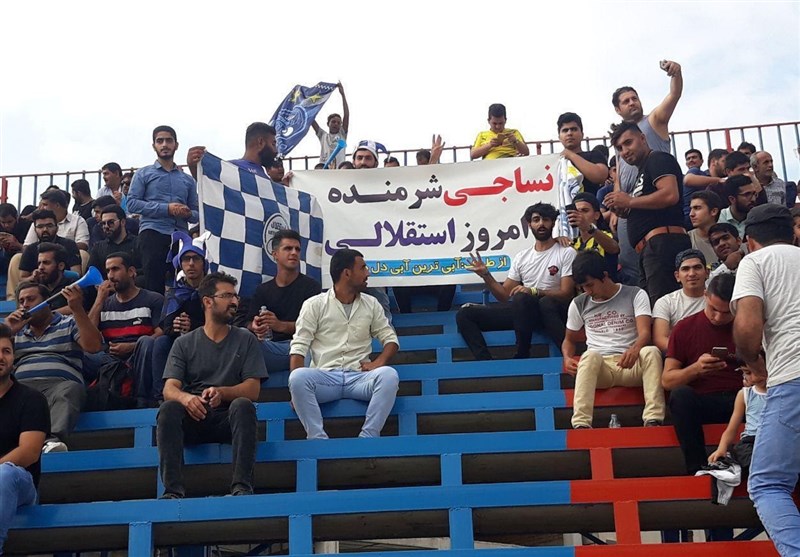 * تعدادی از هواداران استقلال بنر جالبی با این عنوان که «نساجی شرمنده، امروز استقلالیام» در دست دارند.