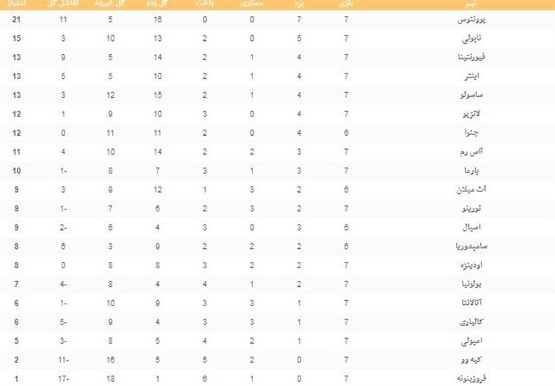 جدول ردهبندی سری A را در زیر مشاهده کنید.