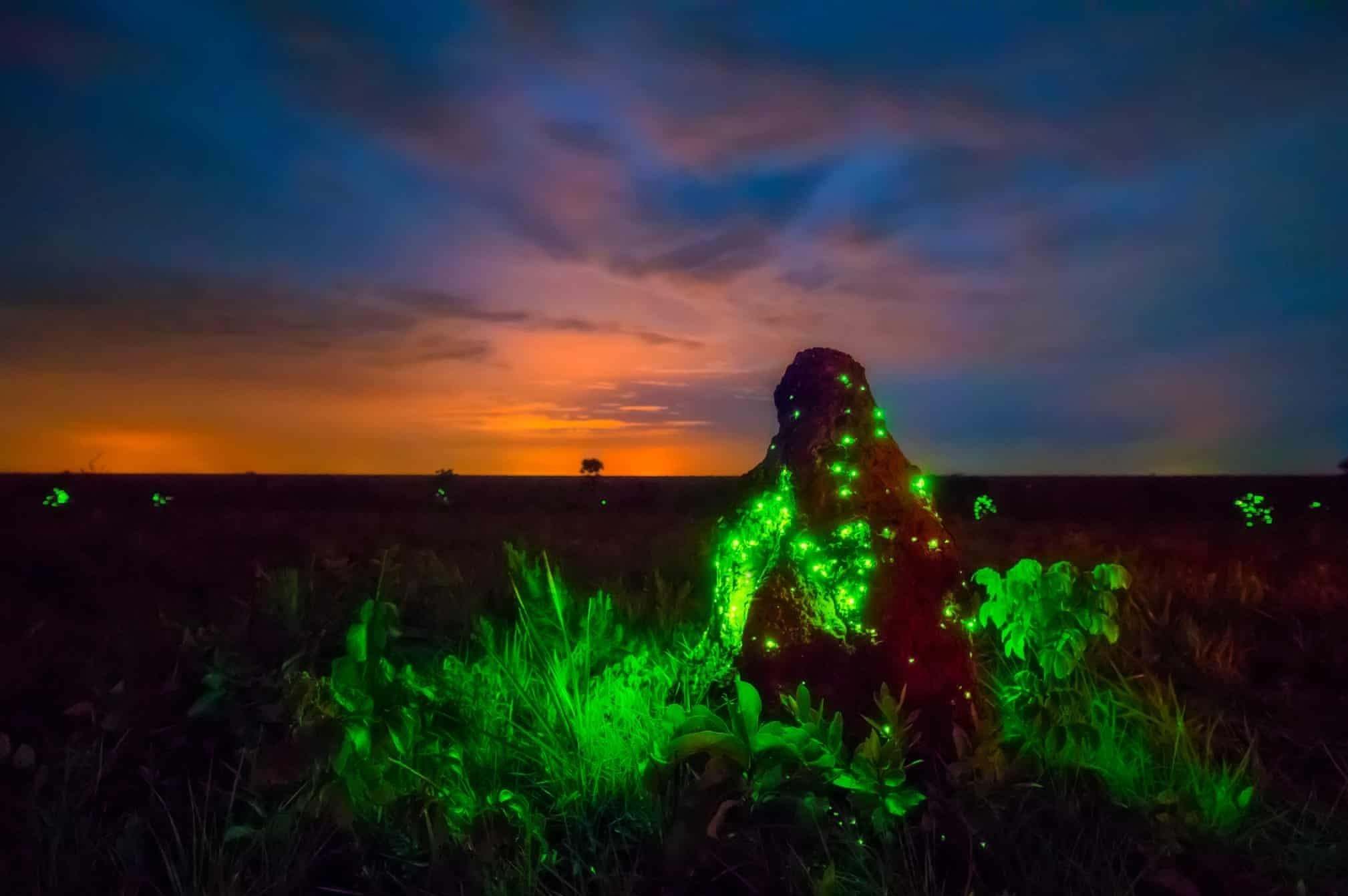 کرمینههای شبتاب متعلق به سوسکهای سرنوری (Headlight Beetles) در اطراف تپه موریانهها واقع در پارک ملی اماس در برزیل / عکس از: Marcio Cabral
