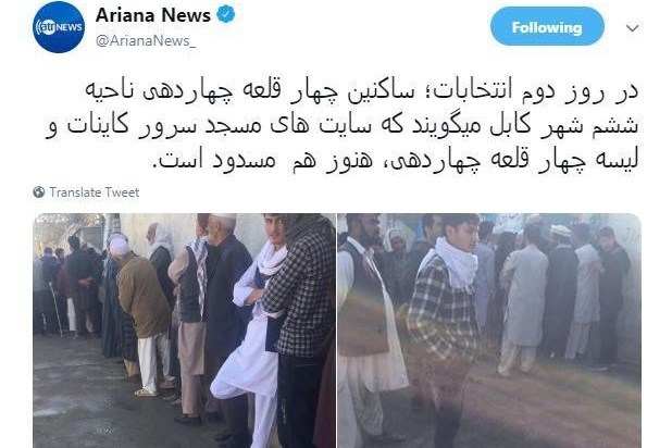 خبرگزاری «آریانا نیوز» اعلام کرد که در روز دوم انتخابات؛ مراکز رای دهی «چهار قلعه چهاردهی» در حوزه امنیتی ششم شهر کابل هنوز مسدود باقی مانده است.