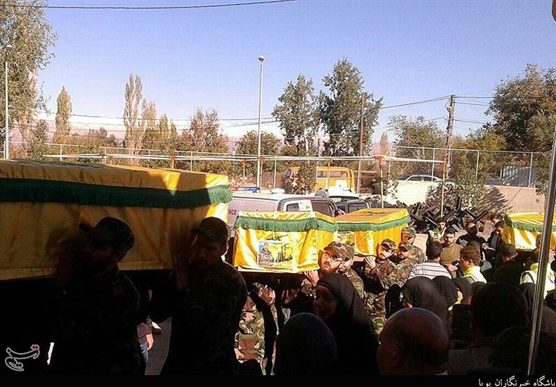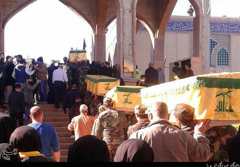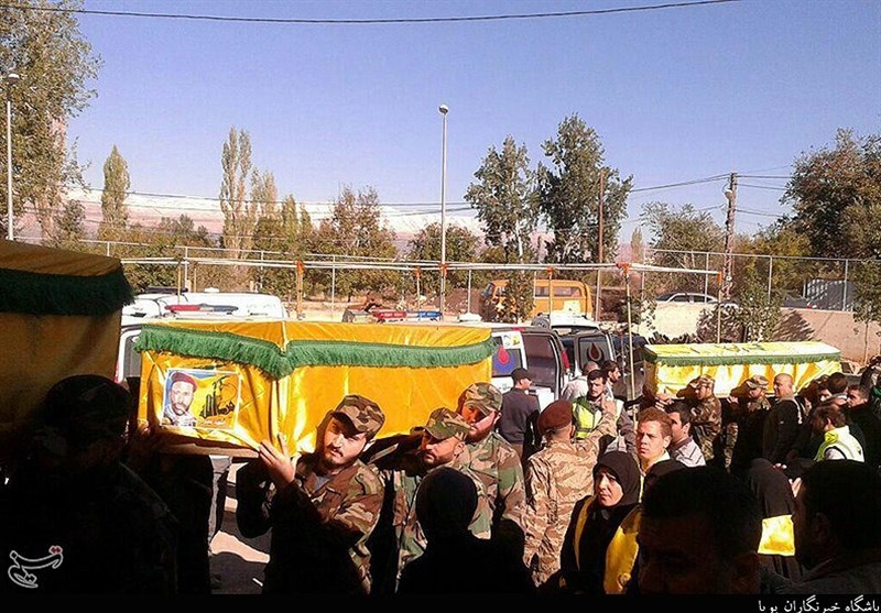 پیکر مطهر شهدای تازه تفحص شده حزب الله لبنان که توسط تروریست‌های تکفیری به شهادت رسیدند, ساعاتی پیش در شهر بلعبک تشییع شد.