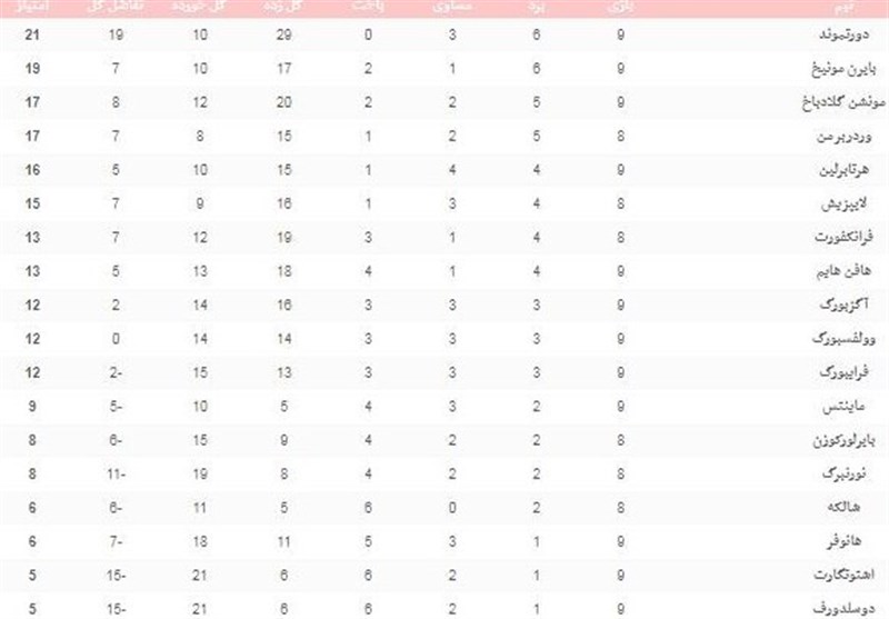 جدول ردهبندی بوندسلیگا را در زیر مشاهده کنید.