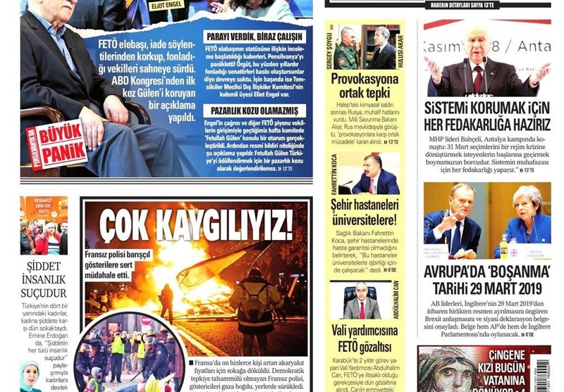 به گزارش گروه بینالملل خبرگزاری تسنیم ، بسیاری از روزنامههای ترکیه، امروز در عکس و تیتر صفحه نخست، حمایت رهبر حزب حرکت ملی از نامزدهای آکپارتی را برجسته کردهاند. همچنین این روزنامهها موضوعات دیگری مانند تصویب برگزیت را مورد توجه قرار دادند.
