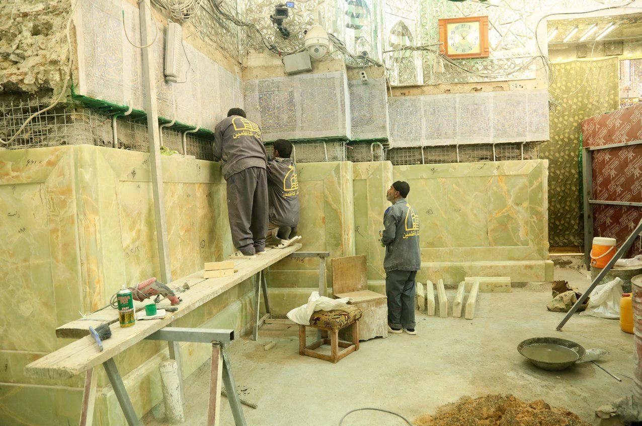 رضائی نسب گفت: با اتمام عملیات زیرسازی، استحکام بخشی و دفع رطوبت از کف و محوطه دیواره‌های اطراف ضریح مطهر امامین جوادین علیهما السلام در هفته‌های گذشته، هم‌اکنون کار نصب سنگ آغاز شده است.
