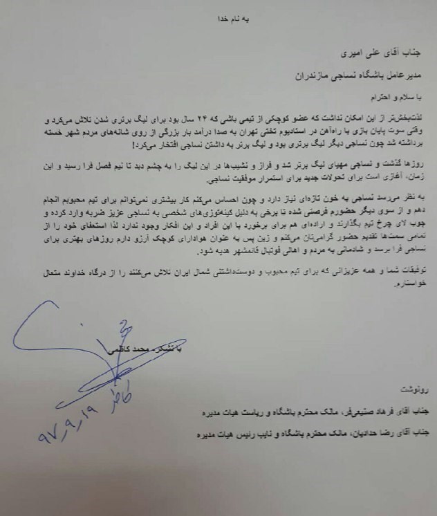 معاون اجرایی باشگاه نساجی از سمتش کناره‌گیری کرد + عکس