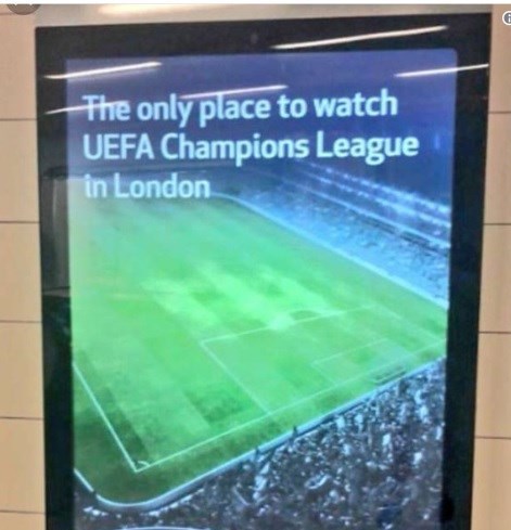 تاتنهام در این پوستر که تصویری از استادیوم جدیدش دیده میشود، نوشته است: تنها جایی در لندن که میشود بازیهای لیگ قهرمانان اروپا را تماشا کرد.» کنایه تاتنهام به عدم حضور چلسی و آرسنال در لیگ قهرمانان بود، دو تیمی که هر دوی آنها در این فصل در لیگ اروپا بازی میکنند.