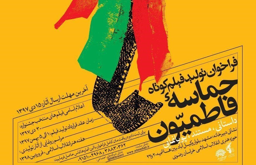 میثم مرادی بیناباج در گفتوگو با خبرنگار تسنیم در مشهدمقدس با اشاره به انتشار فراخوان تولید فیلم کوتاه «حماسه فاطمیون» در سه بخش داستانی، مستند و پویانمایی اظهار داشت: پرداختن به مسائل روز از جمله حماسهها و نبرد دلاورمندانه فاطمیون در مقابله با جریانات تکفیری و دفاع از حرم اهل بیت(ع) در سوریه میتواند الهامبخش فیلمسازان ما برای خلق آثار هنری قرار بگیرد.