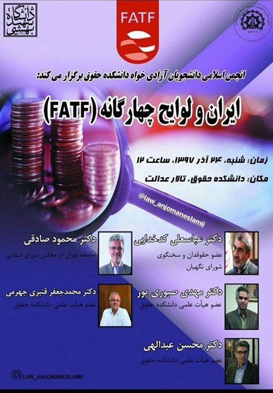 به گزارش گروه سیاسی خبرگزاری تسنیم ، همایش ایران و لوایح چهارگانه (FATF) با حضور عباسعلی کدخدایی، سخنگوی شورای نگهبان و محمود صادقی نماینده مردم تهران در مجلس شورای اسلامی در دانشگاه شهید بهشتی برگزار میشود.