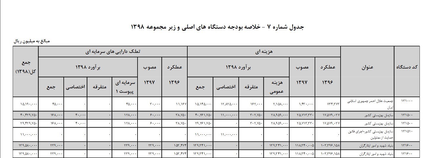 بودجه پیشنهادی سال 98 دولت دوازدهم برای بنیاد شهید |