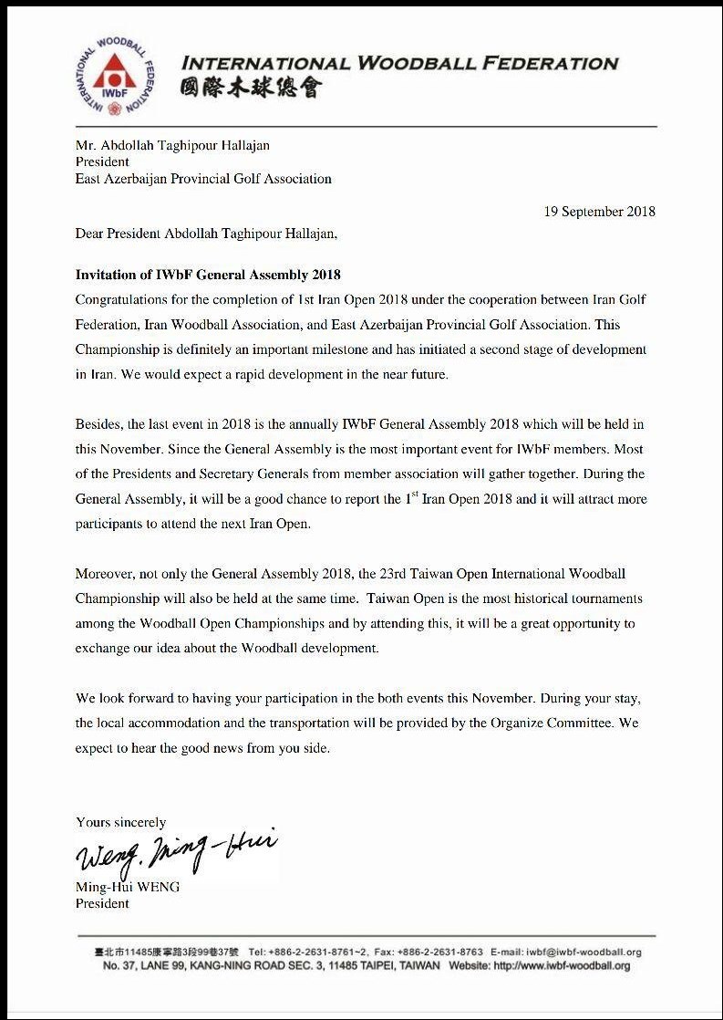 وی با بیان اینکه فدراسیون، دعوتنامه مجمع جهانی را که شخصاً بنده را دعوت کرده بود، اطلاع نداد خاطر نشان کرد: قرار نبود هیچ هزینهای را فدراسیون پرداخت کند چراکه همه هزینه اقامت و ترانسفر و اقامت بر عهده فدراسیون جهانی بود که مسئولان فدراسیون گلف ایران این فرصت عالی را از ایران و استان گرفتند تا صاحب کرسی شویم.