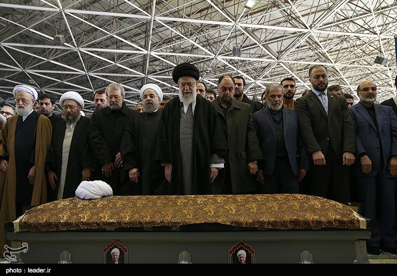 مرحوم آیتالله هاشمی رفسنجانی، رئیس فقید مجمع تشخیص مصلحت نظام، شخصیت دیگری بود که آیتالله خامنهای رهبر معظم انقلاب اسلامی بر پیکر ایشان اقامه نماز کردند.