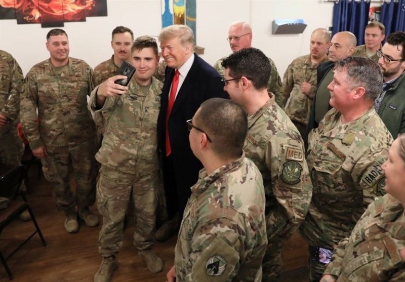 در این میان نظامیان آمریکایی با ترامپ در پایگاه عین الاسد سلفی می گرفتند.
