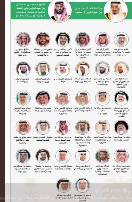 بر اساس فرمان ملک سلمان، عبدالله بن بندر بهعنوان وزیر گارد ملی (سلطنتی) و ترکی الشبانه بهعنوان وزیر اطلاعرسانی حکومت سعودی منصوب شدهاند.