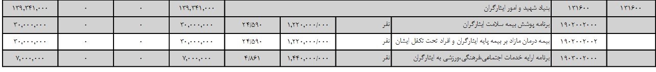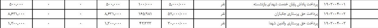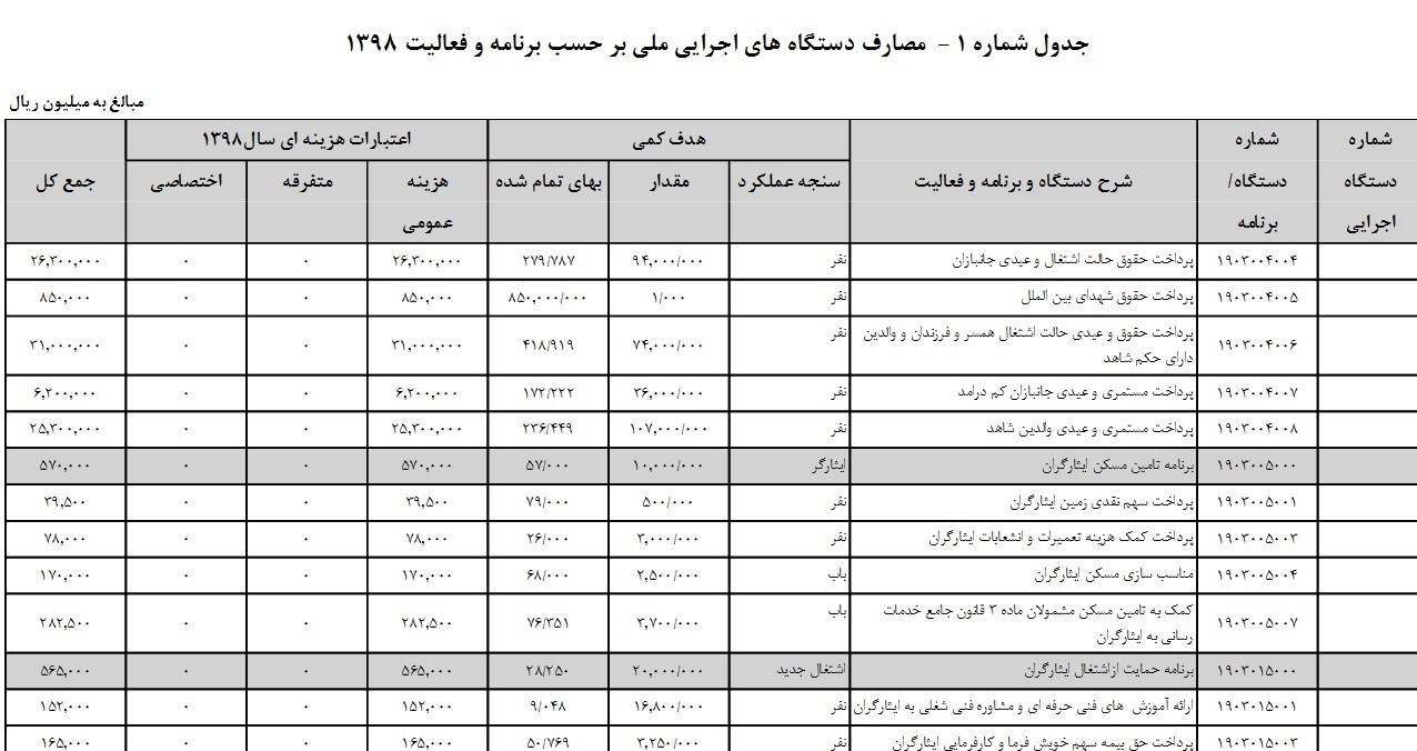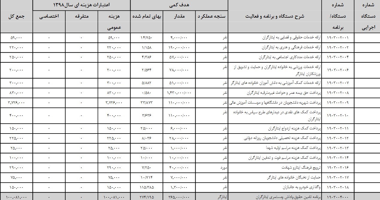 جزئیات بودجه‌های عنوان شده برای ریز برنامه‌های بنیاد شهید در جدول زیر(با مقیاس میلیون ریال) قابل مشاهده است: