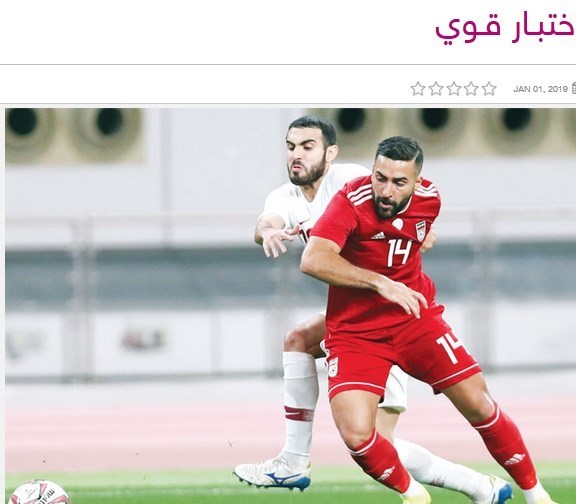 روزنامه الوطن قطر در نسخه امروز خود در مطلبی با عنوان «آزمایش قوی» نوشت: بازی‌ای را که تجربه بسیار قوی برای قطر بود واگذار کردیم. بازی در نیمه نخست با تساوی یک ــ یک پایان یافت اما در نیمه دوم سردار آزمون زننده گل دوم ایران بود. این بازی آزمایش قوی برای هر 2 تیم قطر و ایران  در مسیر آماده‌سازی جام ملت‌های آسیا بود.