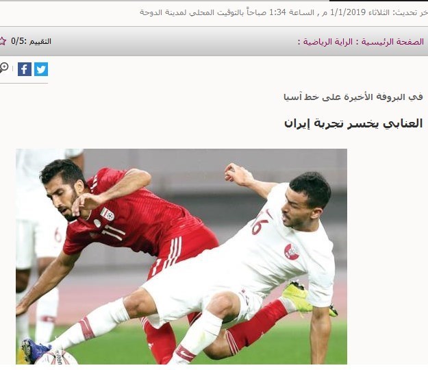 روزنامه الرایه قطر نیز با تیتر شکست عنابی‌ها در تجربه بازی با ایران می‌نویسد: این بازی یک تجربه بسیار قوی برای قطر در آخرین مرحله آماده‌سازی جام ملت‌های آسیا بود که با شکست پایان یافت. در این بازی بازیکنان قطر به‌خوبی جنگیدند و فلیکس سانچز، سرمربی اسپانیایی چهره اصلی تیمش را برای نخستین نبرد آسیایی برابر لبنان شناخته است.
