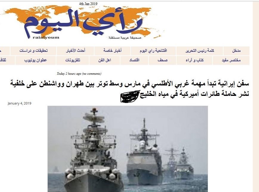 روزنامه‌ فرامنطقه‌ای «رای‌الیوم» به سردبیری عبدالباری عطوان چاپ لندن در خبری به آغاز ماموریت ناوگروه ارتش جمهوری اسلامی ایران در اقیانوس اطلس اشاره کرد و در تیتری نوشت کشتی‌های ایرانی ماموریت خود در اقیانوس اطلس در ماه مارس در سایه تنش میان تهران و واشنگتن در پی استقرار ناو هواپیمابر آمریکا در آب‌های خلیج(فارس) آغاز کردند.