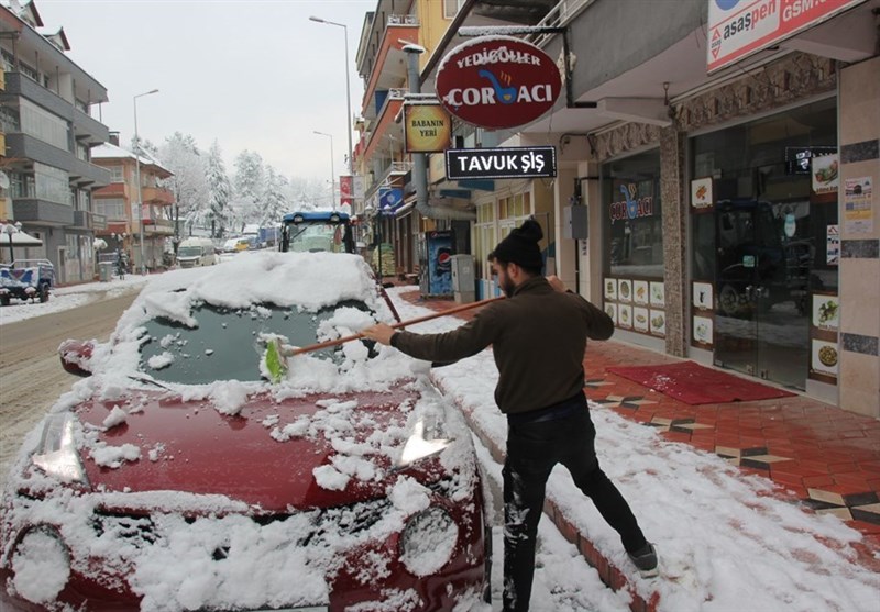 بارش برف و تعطیلی مدارس در ترکیه + عکس