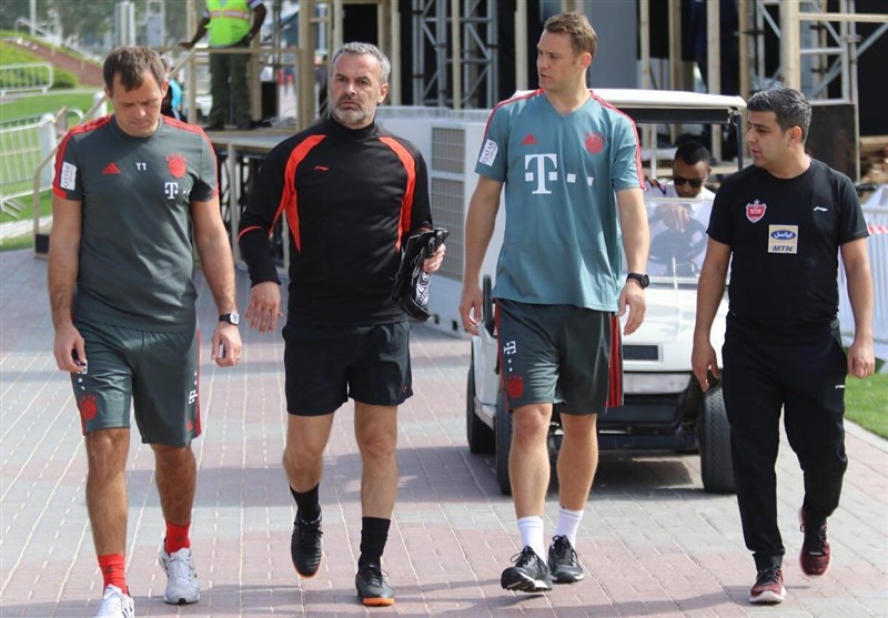 * در میان تمرین قرمزپوشان، نویر و مربی گلرهای تیم بایرن مونیخ در کنار زمین حضور یافتند و دقایقی با برانکو ایوانکوویچ و ایگور پانادیچ دیدار و گفتگو کردند.