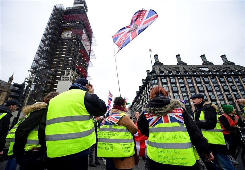 معترضان لندنی با پوشیدن جلیقههای زرد رنگی که روی آنها نوشته شده بود "بریتانیا فروپاشیده است" در لندن راهپیمایی کردند و خواستار توجه دولت به مشکلات آنها به جای تمرکز بر مساله برگزیت شدند.