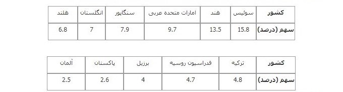 جدول 1- سهم کشورهای عمده از صادرات محصولات کشاورزی و صنایع غذایی ایران در 9 ماهه سال 1397