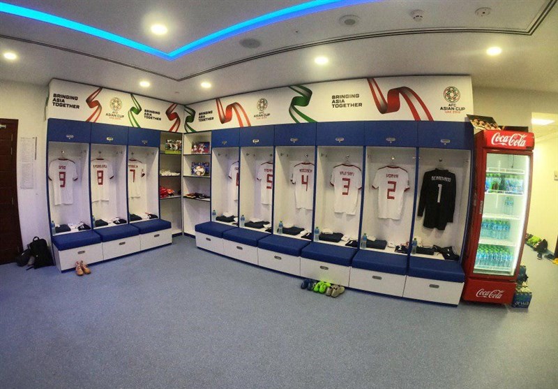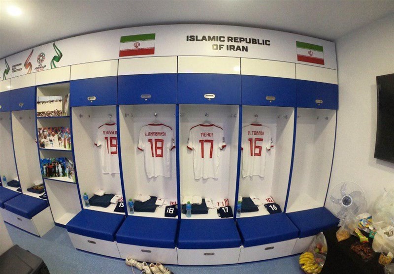 * دو ساعت مانده به آغاز بازی، رختکن دو تیم آماده حضور تیمها شده است و لباس بازیکنان مقابل کمدهای آنها قرار دارد. از رختکن دو تیم پیش از بازی نیز رونمایی شد که لباسهای سفید ایران و سبز عراق یادآور دیدار چهار سال قبل در استرالیا باشد.